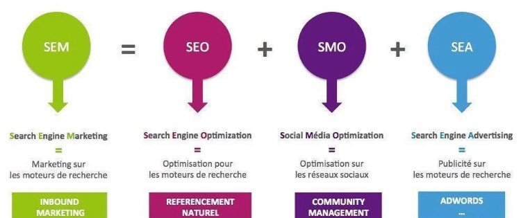 SEO (Search Engine Optimization) + SMO (Social Média Optimization) + SEA (Search Engine Advertising) = SEM (Search Engine Marketing)